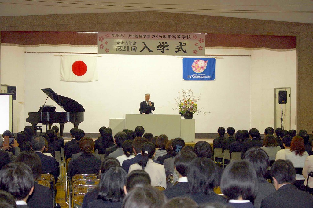 上田市手塚のさくら国際高校(荒井裕司理事長、石川武校長)は「第21回 入学式」を体育館で行った。