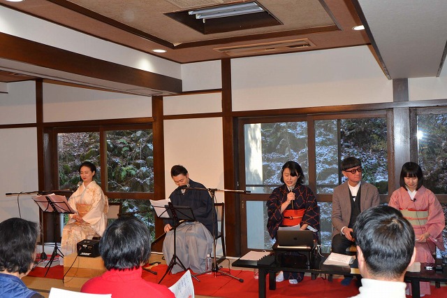 「失われた唄声に耳を澄ます」をテーマにリサーチの成果報告と意見交換を兼ねた「新年の宴」を、別所温泉の元旅館「柏屋別荘倶楽部」で開いた。