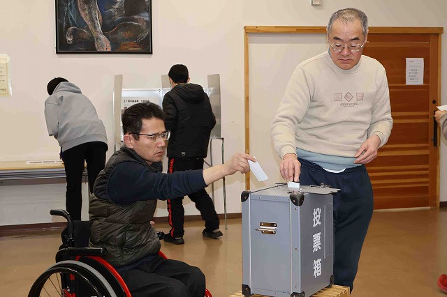 利用者の大館卓哉さん(58)は「それぞれ大切なことを言っていたが、一番共感した人に入れた。話し方が良くて気持ちが伝わってきた」。松平京子さん(69)は「ごみがなくなればいいと思って投票した人が落ちてしまって残念」と話していた。