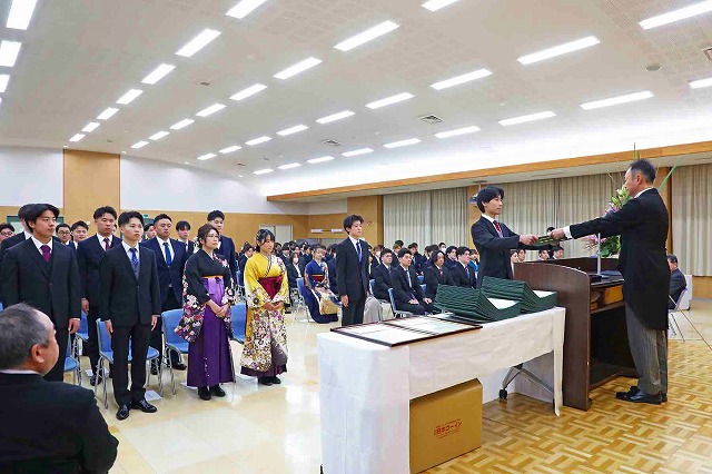 宮澤好一理事長は「人生の新たな門出に羽ばたく皆さん、志を高く、夢を持ち続けて。未来を切り開く活力になります。先行きが見えない混沌とした時代は、皆さんの個性が輝く時代。自分の選んだ道を堂々と歩んで」と語った。