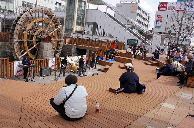 水車前では高校生によるステージ発表があり、上田西生徒会の太鼓演奏、上田染谷丘ダンス班のダンス、上田千曲や上田西の吹奏楽演奏、上田染谷丘や上田東の軽音演奏などがにぎやかに繰り広げられた。