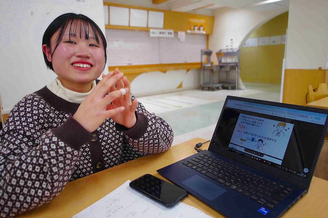 2月に行った最終発表では、デスクワークの多い企業など向けに試供品として貸し出し、食堂や共有スペースに置いてもらうことや、病院へサブスクのように月替わりで貸し出し、入院患者に利用してもらうことなど提案した。