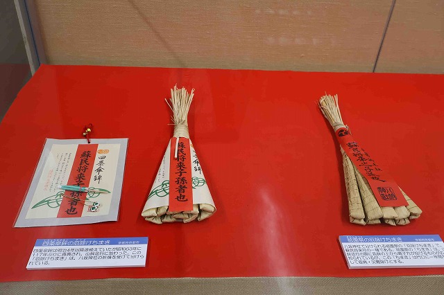 岩手県奥州市にある黒石寺の棒状蘇民将来符や京都府京都市の八坂神社祇園祭の「厄除けちまき」なども並ぶ。