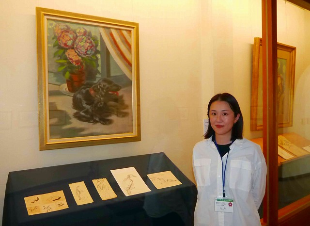 同市出身の洋画家・小山敬三画伯(1897―1987年)の初公開となる油彩画「犬と紫陽花」をはじめ、動物スケッチの原画など24点が並ぶ。