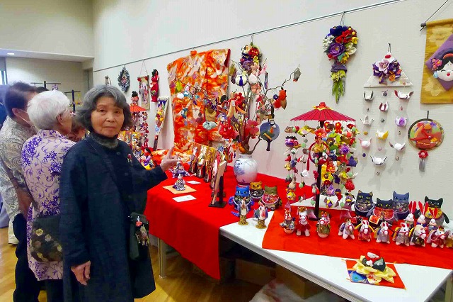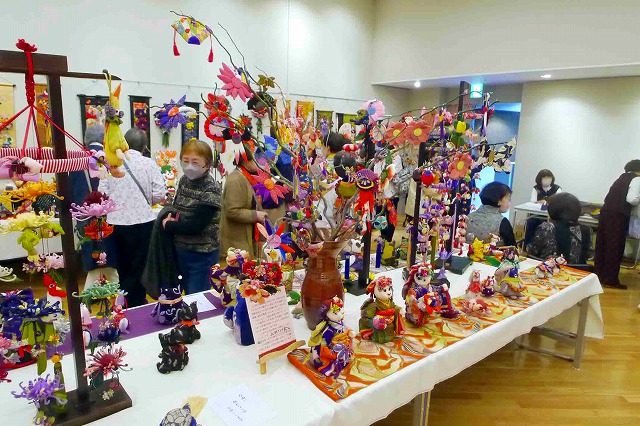 上田さくら会はあす26日まで「季節のつるし飾りと人形展」を上田市サントミューゼ市民アトリエ・ギャラリーで開いている。