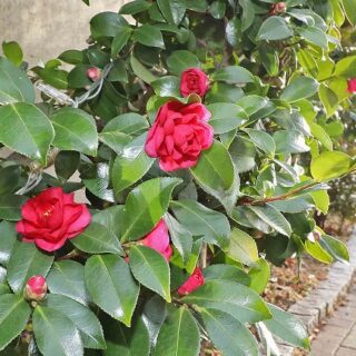 サザンカが上田市の海野町で咲く!