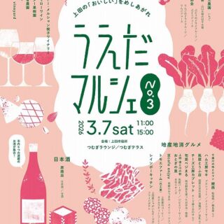 「うえだマルシェ」(3月7日・上田市役所のつむぎラウンジ・つむぎテラス)☆上田市内6蔵の日本酒やワイン、甘酒、農畜水産物が味わえる